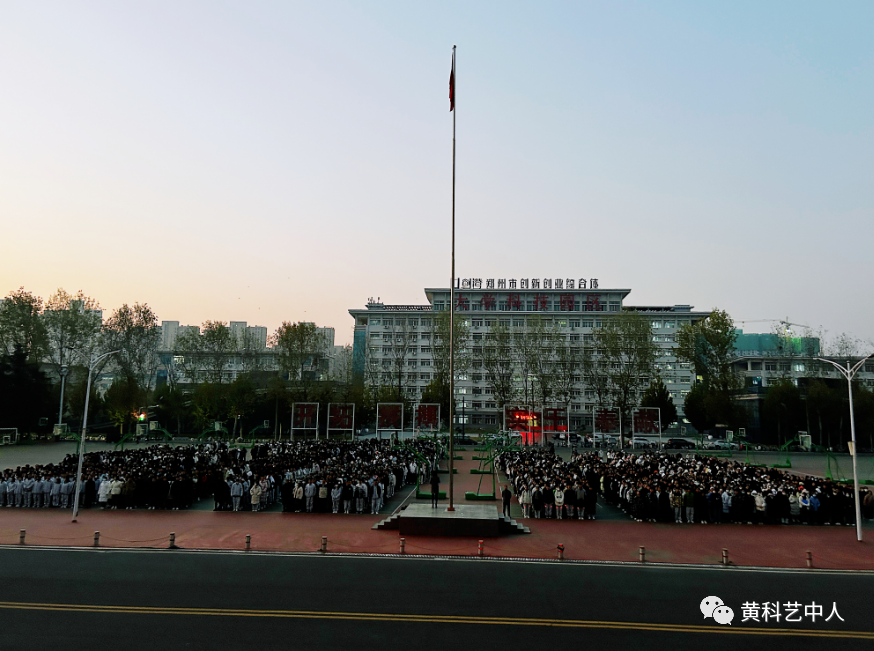 6:30,国旗护卫队护卫着鲜艳的五星红旗步伐整齐坚定地走向国旗台。现场师生庄严肃立高唱国歌,五星红旗冉冉升起。